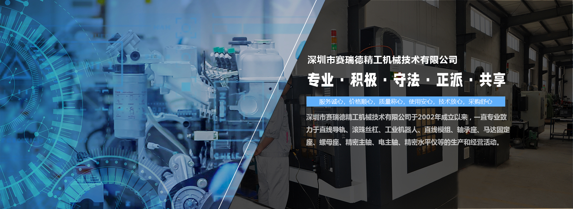 深圳市賽瑞德精工機械技術(shù)有限公司于2002年成立以來,一直專業(yè)致力于直線導(dǎo)軌、滾珠絲杠、工業(yè)機器人、直線模組、軸承座、馬達固定座、螺母座、精密主軸、電主軸、精密水平儀等的生產(chǎn)和經(jīng)營活動。